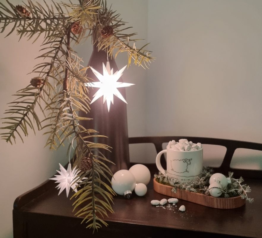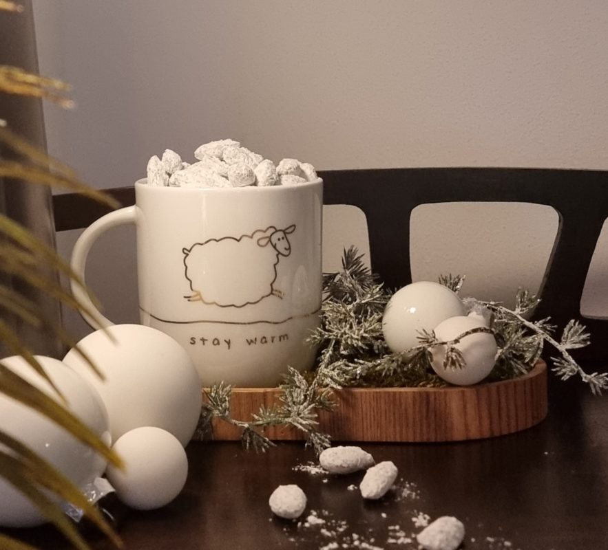 Während sich die Kundin für eine weiß/goldene Porzellandose entschieden hat, wurde es für unsere Fotos die Weihnachtstasse.